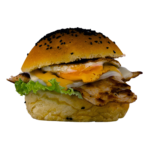 Peito Frango, Ovo, Queiho Cheddar, Queijo Edam, Alface, Tomate, Molho da Casa