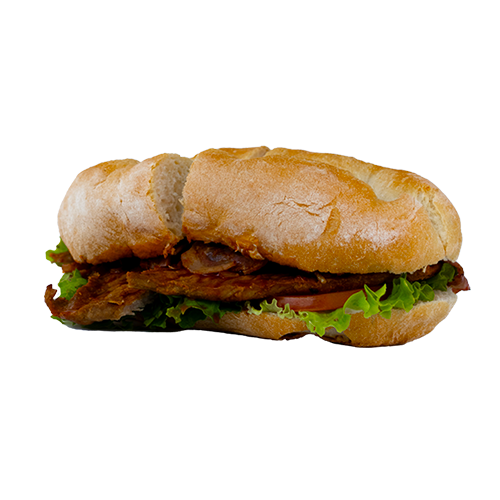 Bife Porco, Alface, Tomate, Cebola frita, Ovo, Cebolada, Becon, Molho da Casa